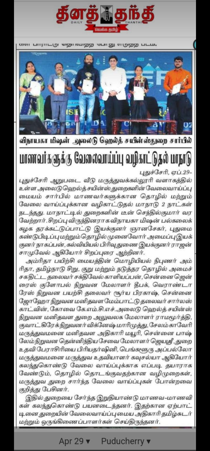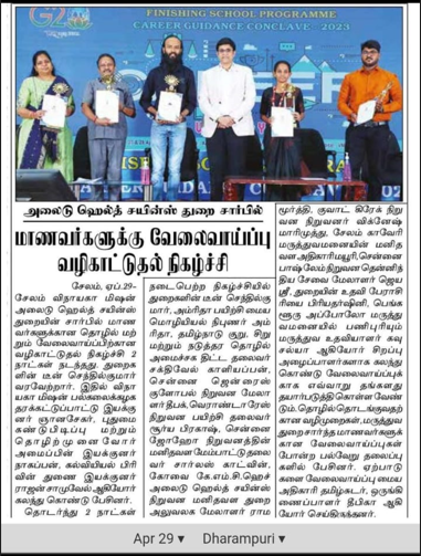 Placement cell, School of Allied Health Sciences, VMRF - DU, Salem organised Career Guidance Conclave - Finishing School Programme 2023 on 27th and 28th April 2023