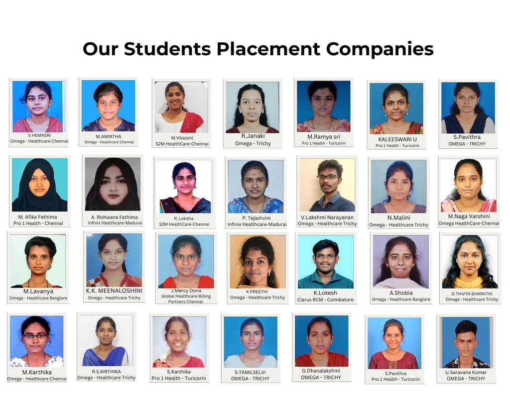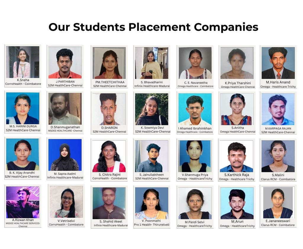 We are proud to be associated with top healthcare and IT companies that regularly recruit our trained candidates. Our placement partners include reputed organizations committed to providing quality career opportunities for aspiring professionals.